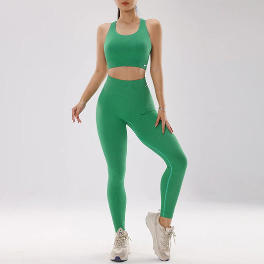Nahtlos gestricktes, einfarbiges, enges, hochelastisches Yoga-Anzug-Set